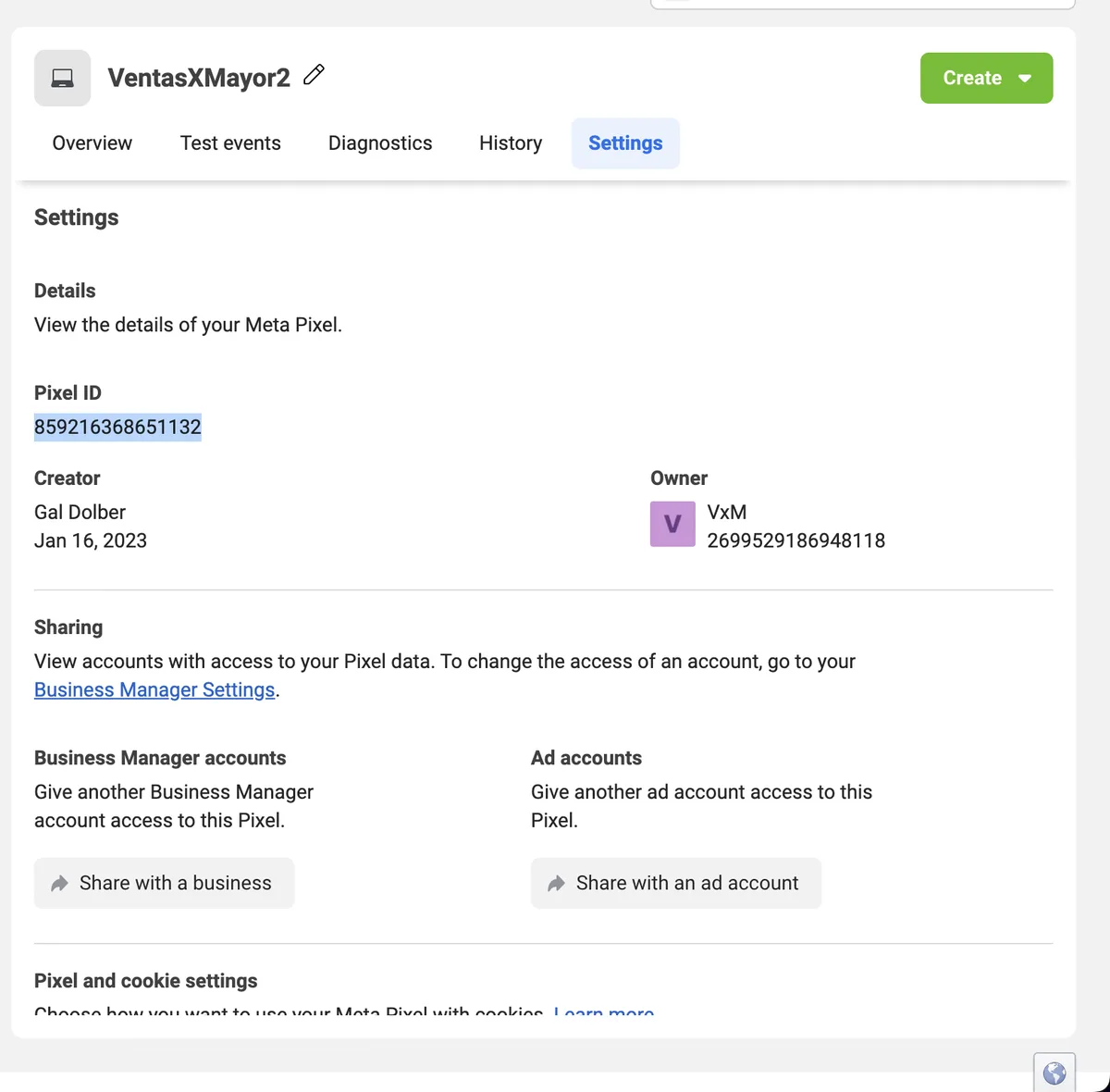 Vá para Configurações e copie o Pixel ID