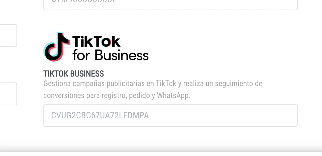 - Vá para a seção “TikTok Business” na área de integrações (seção Marketing/Tracking).